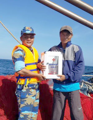 Thượng úy Ngô Trường Linh, Chính trị viên Tàu 937 tặng tủ thuốc y tế cho ngư dân tàu cá