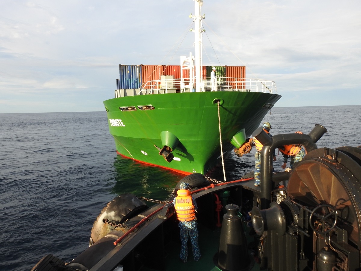 Tàu 991 kéo Tàu Promote về vị trí sửa chữa