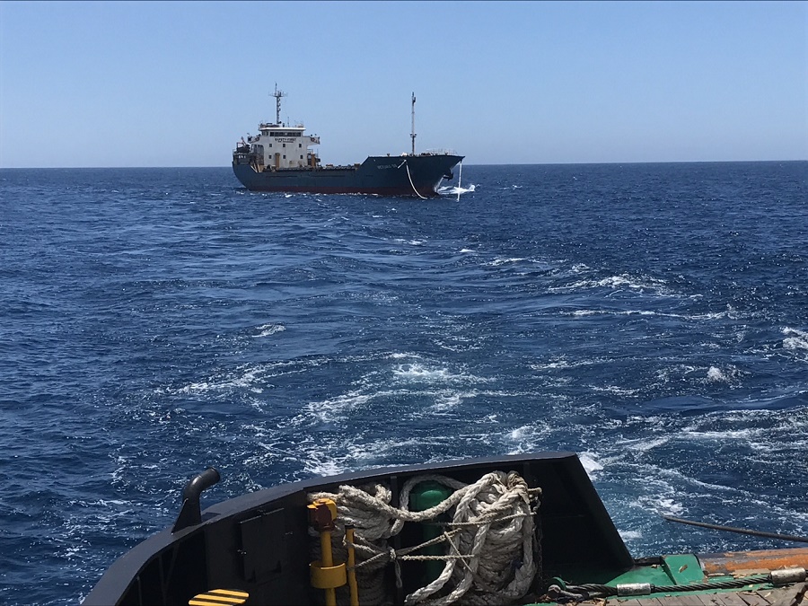 Tàu 991 lai dắt Tàu Victoria 09 về cảng Nha Trang. ảnh: Kỳ Anh