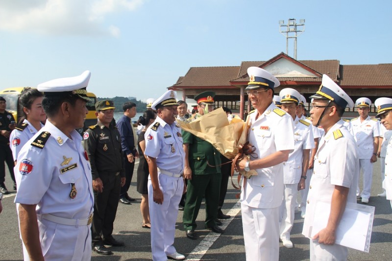 Đại diện Hải quân Hoàng gia Cam-pu-chia đón đoàn tại cảng Sihanouk Ville