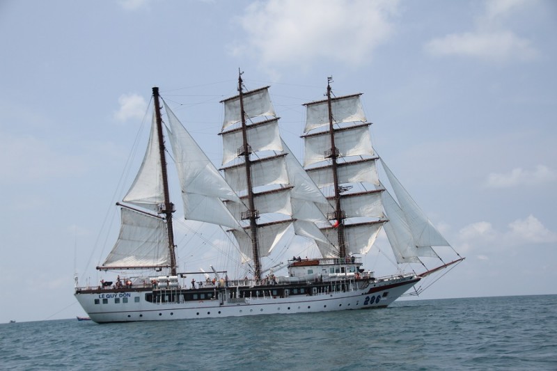 Tàu buồm 286 căng buồm khi huấn luyện thực hành đi biển