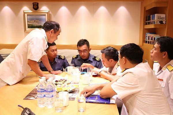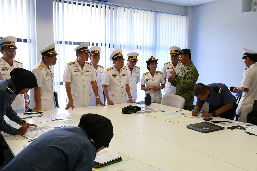 Sỹ quan Hải quân Brunei cùng đoàn công tác thống nhất phương án luyện tập vận động đội hình trên bên biển (pasex)