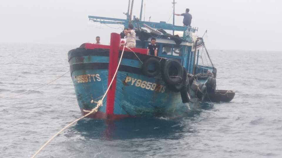 Tàu cá PY 96597 TS đã được Tàu 412, Vùng 4 Hải quân lai kéo vào khu vực đảo Tốc Tan an toàn