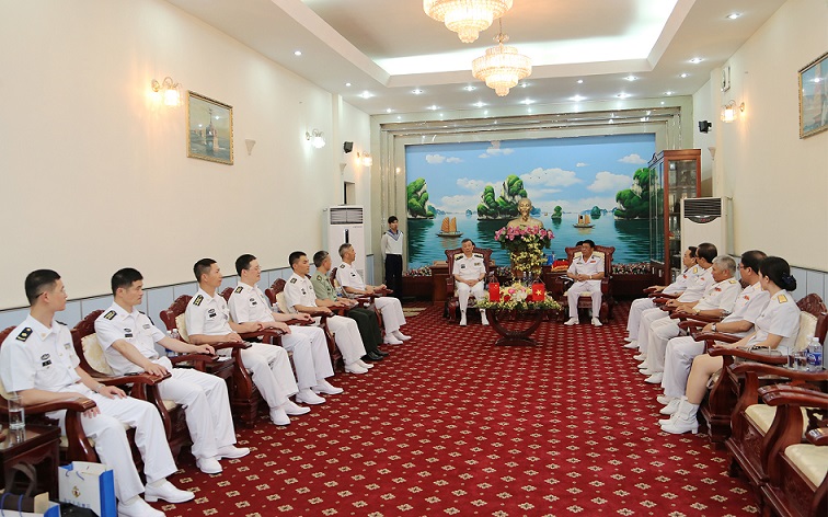 Đại diện cán bộ, thủy thủ Hải quân Trung Quốc chào xã giao Bộ Tư lệnh Hải quân phía Nam