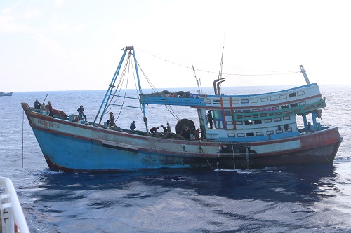 Tàu BV 95577 TS được Tàu KN 263 tiếp cận. Ảnh: CTV