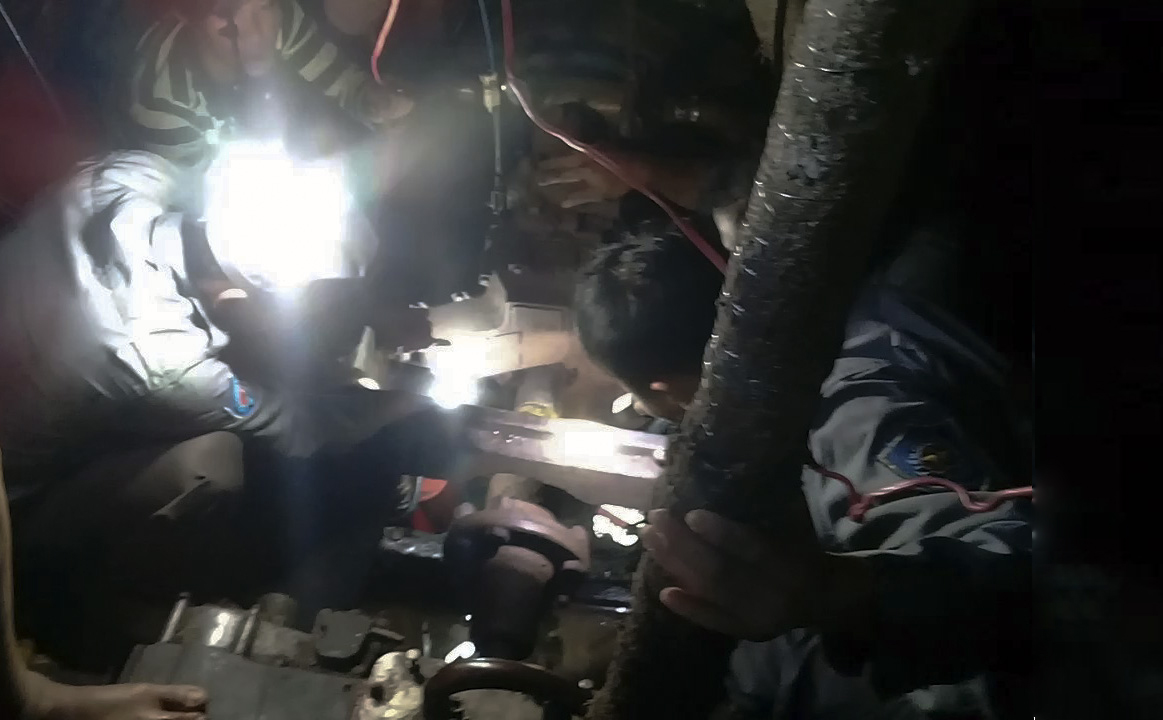 Cán bộ, nhân viên Tàu K267 sửa chữa hệ thống bánh lái Tàu TG 90469 TS
