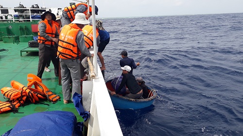 1 giờ 30 phút ngày 23-8, Tàu KN 410, Chi đội Kiểm ngư số 4 đã đưa 13 ngư dân tàu cá QNg 90500 TS bị nạn về đảo Sơn Ca và bàn giao cho chỉ huy đảo an toàn.