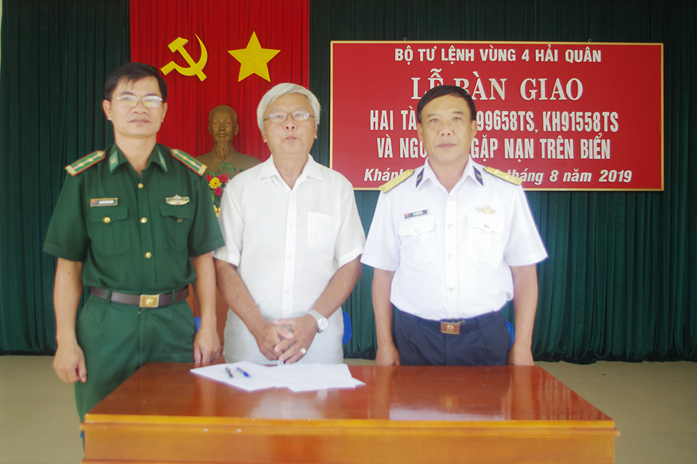 Bàn giao tàu và ngư dân cho Biên phòng tỉnh Khánh Hòa và chủ tàu