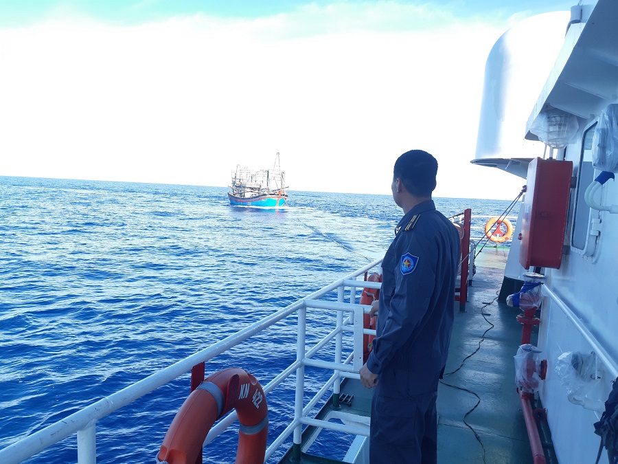 Được sự điều động của trên, 13 giờ 50 phút, Tàu KN 422 đang hoạt động ở Tây Nam đảo Bạch Long Vỹ khoảng 18 hải lý đã nhanh chóng xuất phát đi cứu tàu cá bị nạn.