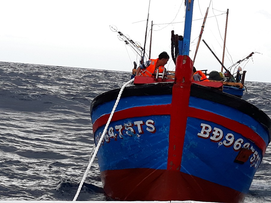 Trước đó, vào lúc 9 giờ ngày 7-8, tàu cá BĐ 96475 TS hành trình trong khu vực thời tiết xấu đã bị phá nước, có nguy cơ bị chìm. Vị trí tàu lúc đó cách Tây Bắc đảo Song Tử Tây, huyện đảo Trường Sa, tỉnh Khánh Hòa khoảng 151 hải lý.