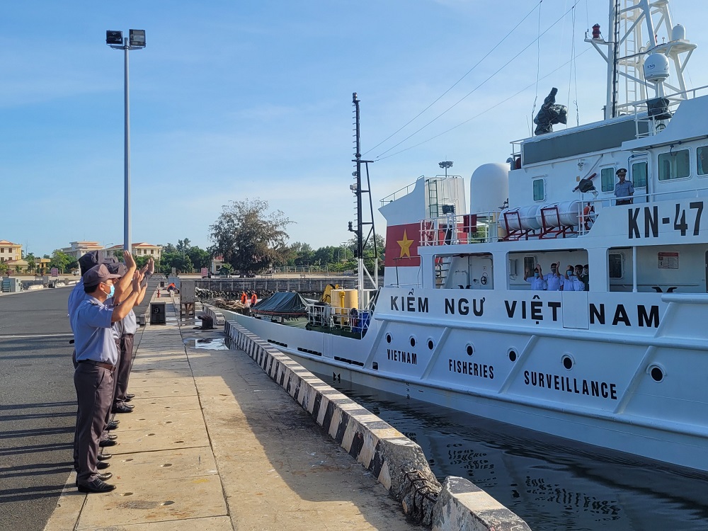 Sáng 6/11, tại Cam Ranh, Khánh Hòa, Tàu KN475 và KN462 thuộc Chi đội Kiểm ngư số 4 chở 2 tổ quân y của Vùng 4 Hải quân và các trang, thiết bị y tế xuất phát đi tiêm vắc xin ngừa Covid-19 cho quân và dân huyện đảo Trường Sa.