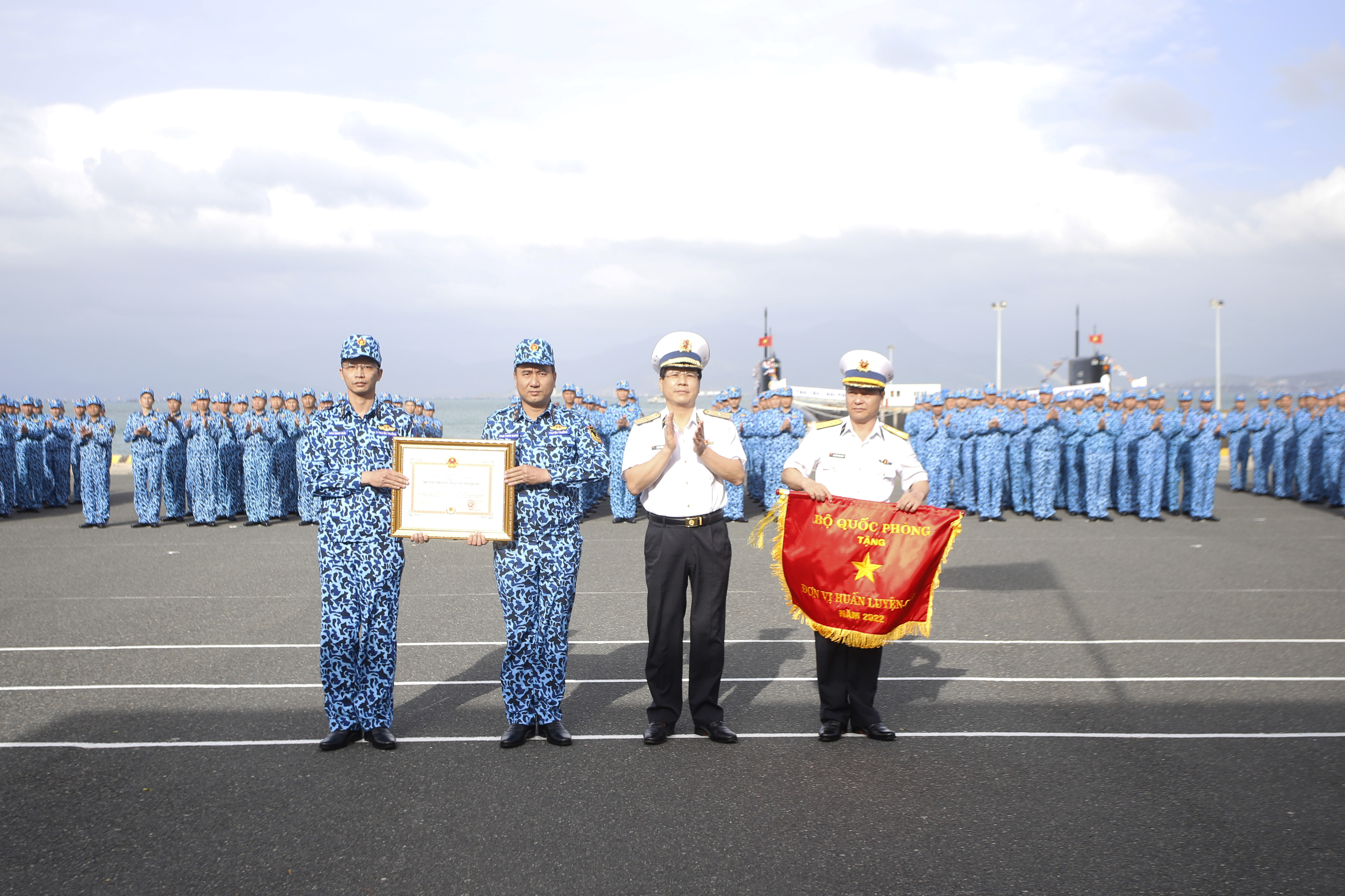 Thừa ủy quyền của Chủ tịch nước, Chuẩn Đô đốc Hoàng Hồng Hà, Phó Tư lệnh Hải quân trao Huân chương Bảo vệ Tổ quốc hạng Ba cho tập thể Tàu ngầm 183