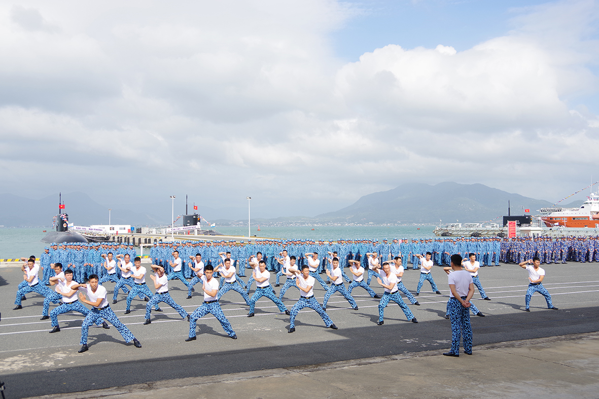 Cán bộ, thủy thủ Tàu 183 đồng diễn thể dục trong Lễ ra quân luyện năm 2024