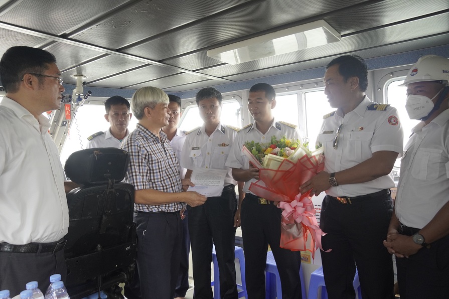 Lãnh đạo Cảng vụ Hàng hải Vũng Tàu tặng hoa và thư khen tập thể tàu Tân Cảng P3