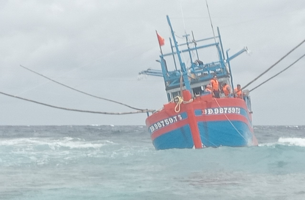 Rạng sáng 26/9, tàu Trường Sa 12 thuộc Hải đội 411, Lữ đoàn 955 (Vùng 4 Hải quân) đã kịp thời cứu các ngư dân trên tàu cá của tỉnh Bình Định bị mắc cạn trên khu vực biển huyện đảo Trường Sa, tỉnh Khánh Hòa.