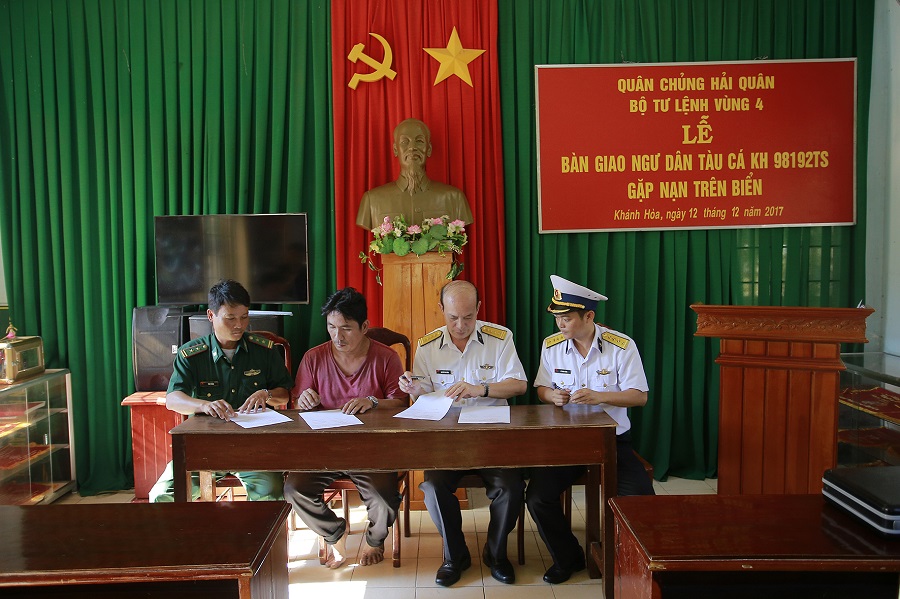Vùng 4 Hải quân đã phối hợp với Bộ đội Biên phòng tỉnh Khánh Hòa bàn giao tàu và ngư dân bị nạn cho chính quyền địa phương và gia đình theo đúng quy định.