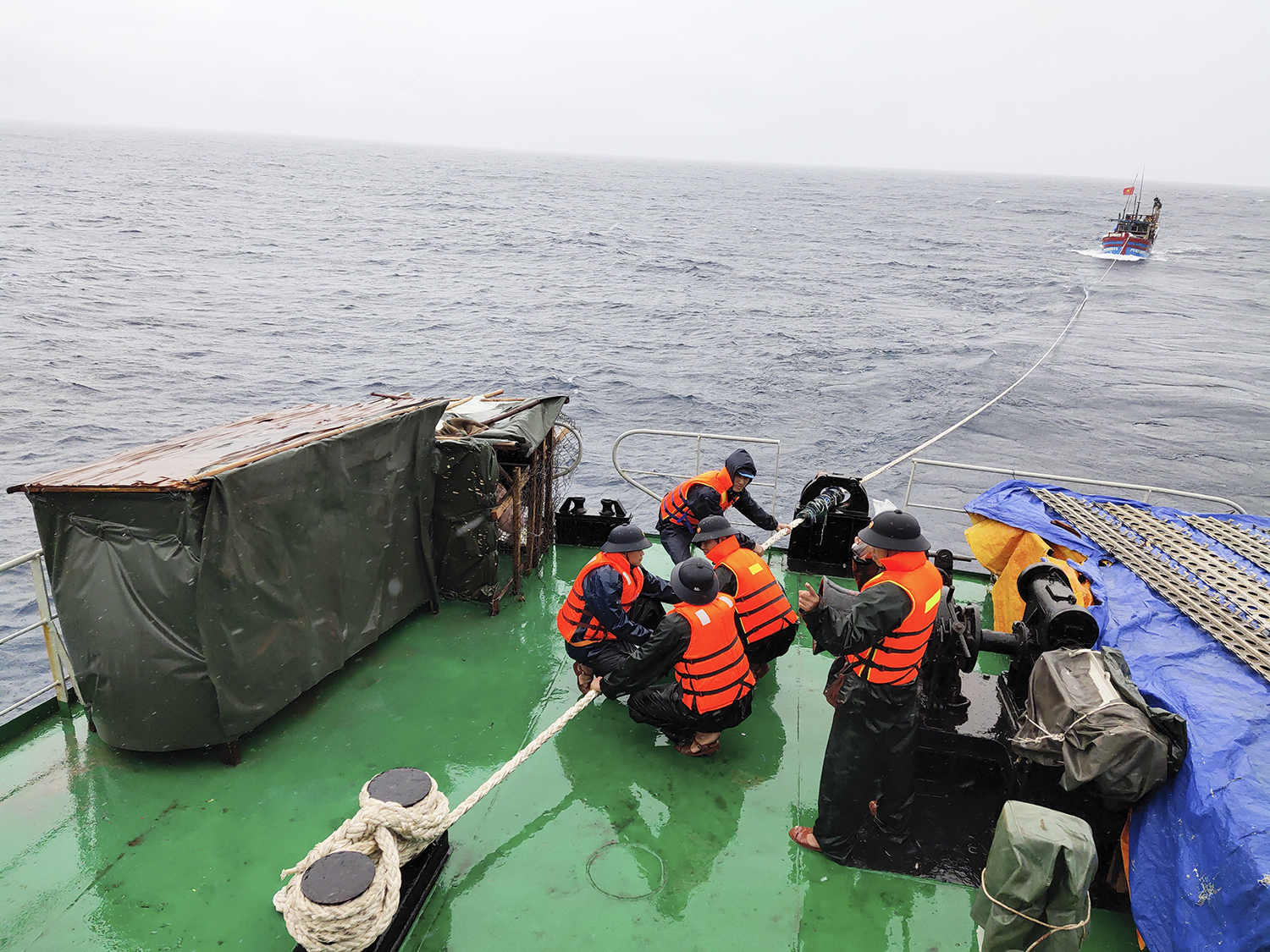Vùng 4 Hải quân đã điều động Tàu Trường Sa 22 đang làm nhiệm vụ trên biển cơ động tiếp cận tàu cá bị nạn. Mặc dù thời tiết phức tạp, sóng to, gió lớn, đêm tối song cán bộ, chiến sĩ Tàu Trường Sa 22 đã khẩn trương cơ động và tiếp cận được hiện trường lúc 00 giờ ngày 19-8 và tiến hành làm dây cứu kéo tàu cá.