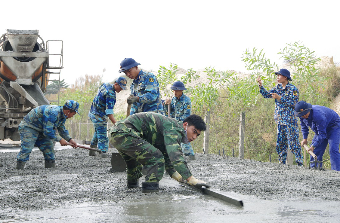Trung tá Nguyễn Đức Nhật, Tiểu đoàn trưởng Tiểu đoàn 884, Chỉ huy trưởng Khung xây dựng công trình dáng người hao gầy, da ngăm đem trong bộ bảo hộ lấm lem đất bụi đang trực tiếp chỉ đạo bộ đội làm đường. Tạm dừng làm việc, ra đón đoàn công tác, anh Nhật hồ hởi: “Con đường này bị hư hỏng nặng lâu rồi mà không được tu sửa. Bà con đi lại qua đây nhiều người bị tai nạn do mặt đường lồi lõm. Hôm nay theo kế hoạch là anh em nghỉ Tết rồi nhưng tranh thủ hoàn thiện con đường liên thôn giúp bà con đi lại cho an toàn, đặc biệt là trong dịp Tết Nguyên đán sắp tới”.