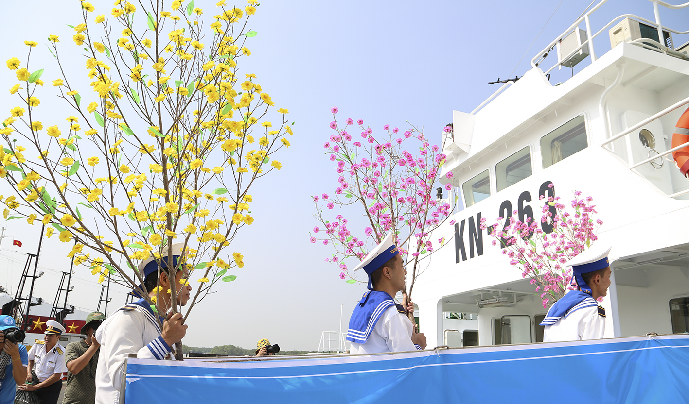 Những cành mai, cành đào lên tàu để đến với cán bộ, chiến sĩ Nhà giàn