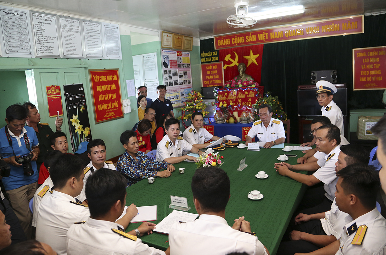 Lãnh đạo đoàn công tác tặng quà của đất liền đến cán bộ, chiến sĩ Nhà giàn DK1/10
