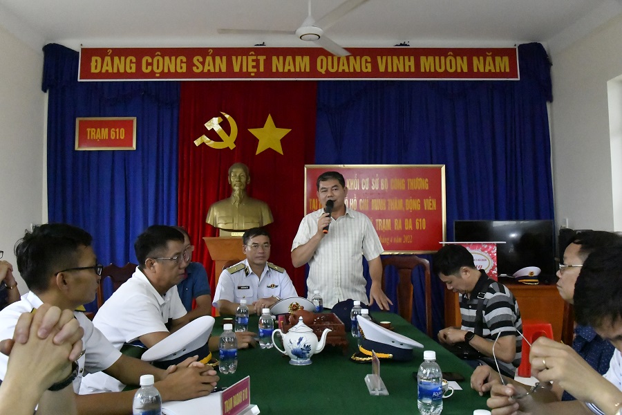 Đoàn công tác đã đến thăm, động viên cán bộ, chiến sĩ Trạm ra đa 610 và Trạm ra đa 595 trên đảo Thổ Chu, tỉnh Kiên Giang và đảo Hòn Khoai, tỉnh Cà Mau.