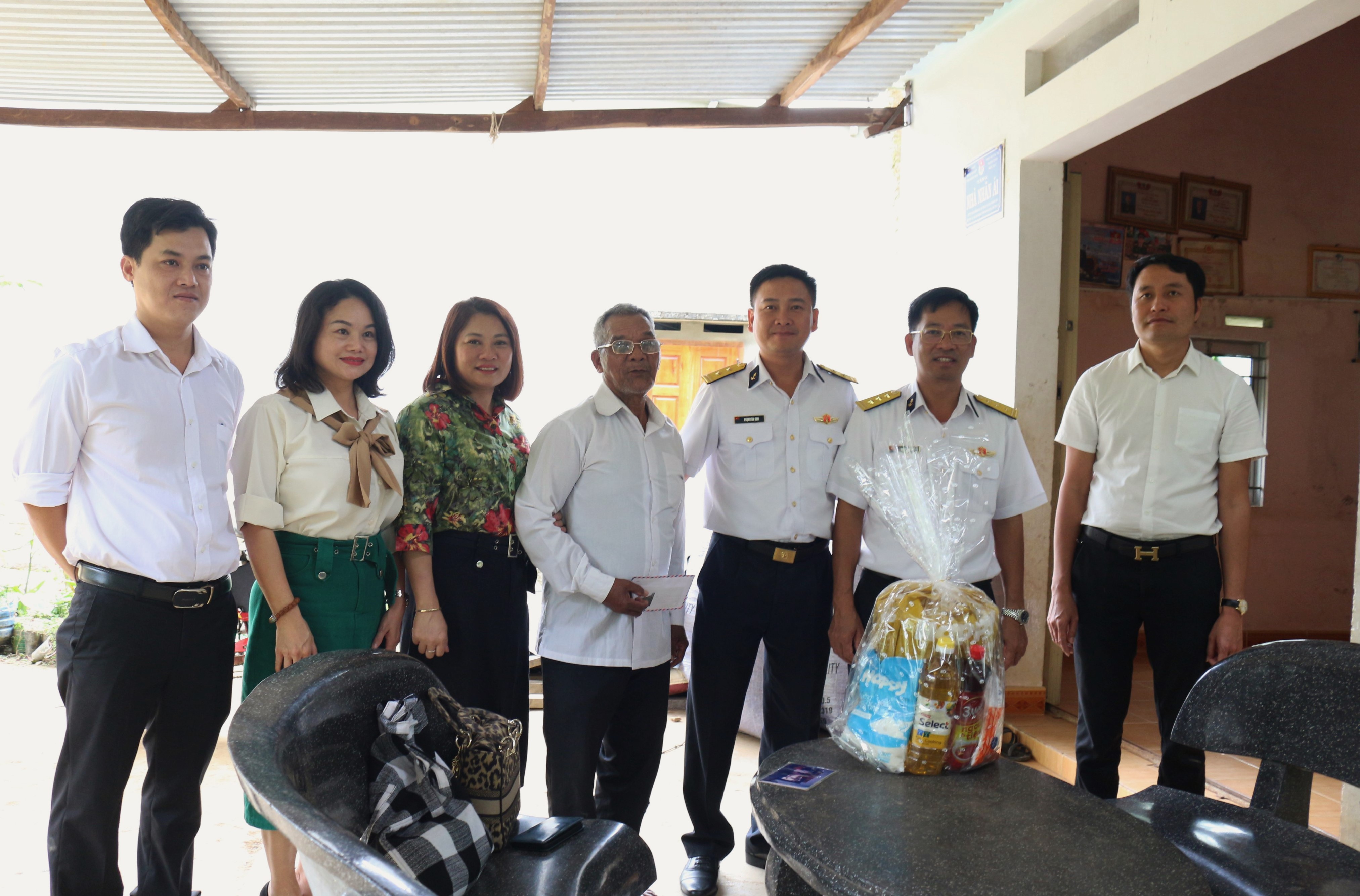 Trong chuyến công tác lần này, những trường hợp, các cụ tuổi cao, sức khỏe yếu, đi lại khó khăn, đại diện Lữ đoàn cùng cơ quan, doanh nghiệp đến tận nhà để thăm hỏi, động viên và tặng quà các gia đình. Gia đình cụ Tro Đâng thuộc diện gia đình chính sách đặc biệt khó khăn trong xã Sơn Lâm. Cụ năm nay 91 tuổi, sống cùng con gái út và hai cháu ngoại trong căn nhà tranh, vách làm bằng đất đã nhiều năm. Chồng con gái út của cụ đã chết cách đây gần 10 năm trong một lần đi rừng. Con gái cụ thường xuyên ốm đau, hai cháu thì còn nhỏ, kinh tế gia đình rất khó khăn. Nắm chặt tay cán bộ, chiến sĩ Lữ đoàn, cụ Tro Đâng nghẹn ngào: Tôi già rồi chẳng giúp được gì con cháu, cái nghèo, cái khó nó cứ luẩn quẩn bám theo, nhìn mấy đứa nhỏ mà già này ứa nước mắt các cô chú ạ. Cảm ơn các cô chú, cảm ơn bộ đội Hải quân đã giúp đỡ gia đình tôi.