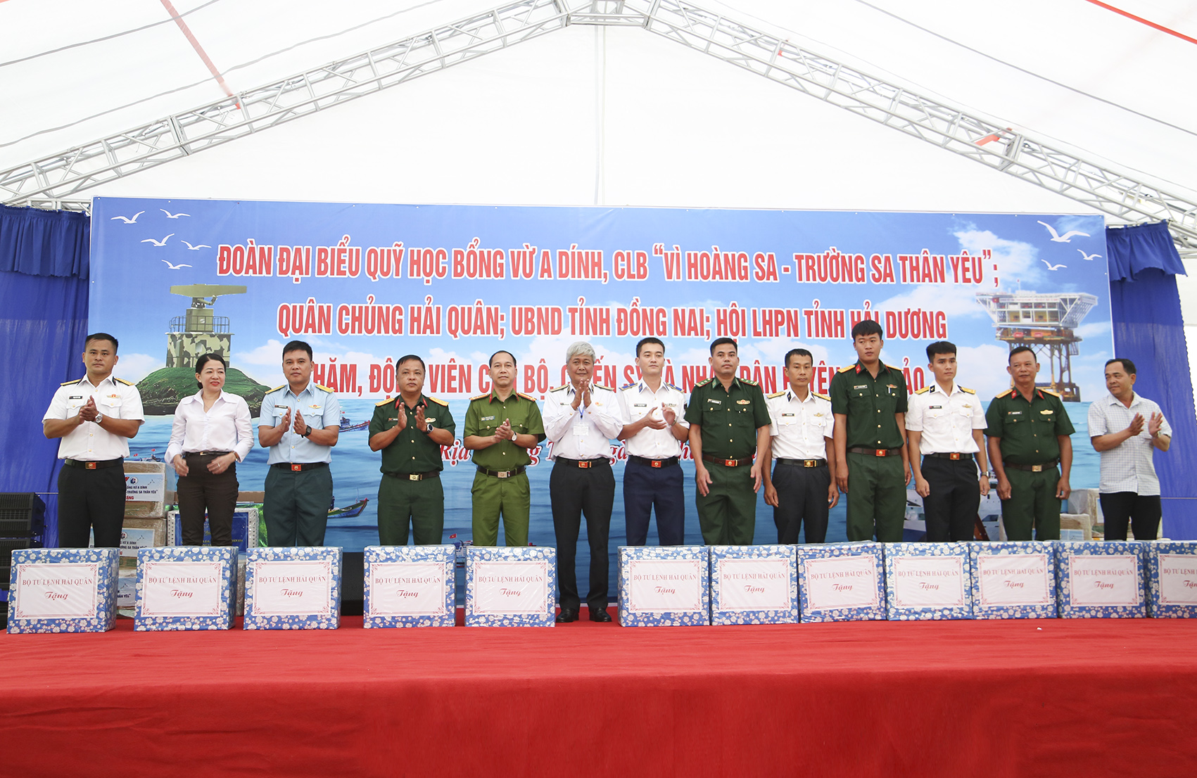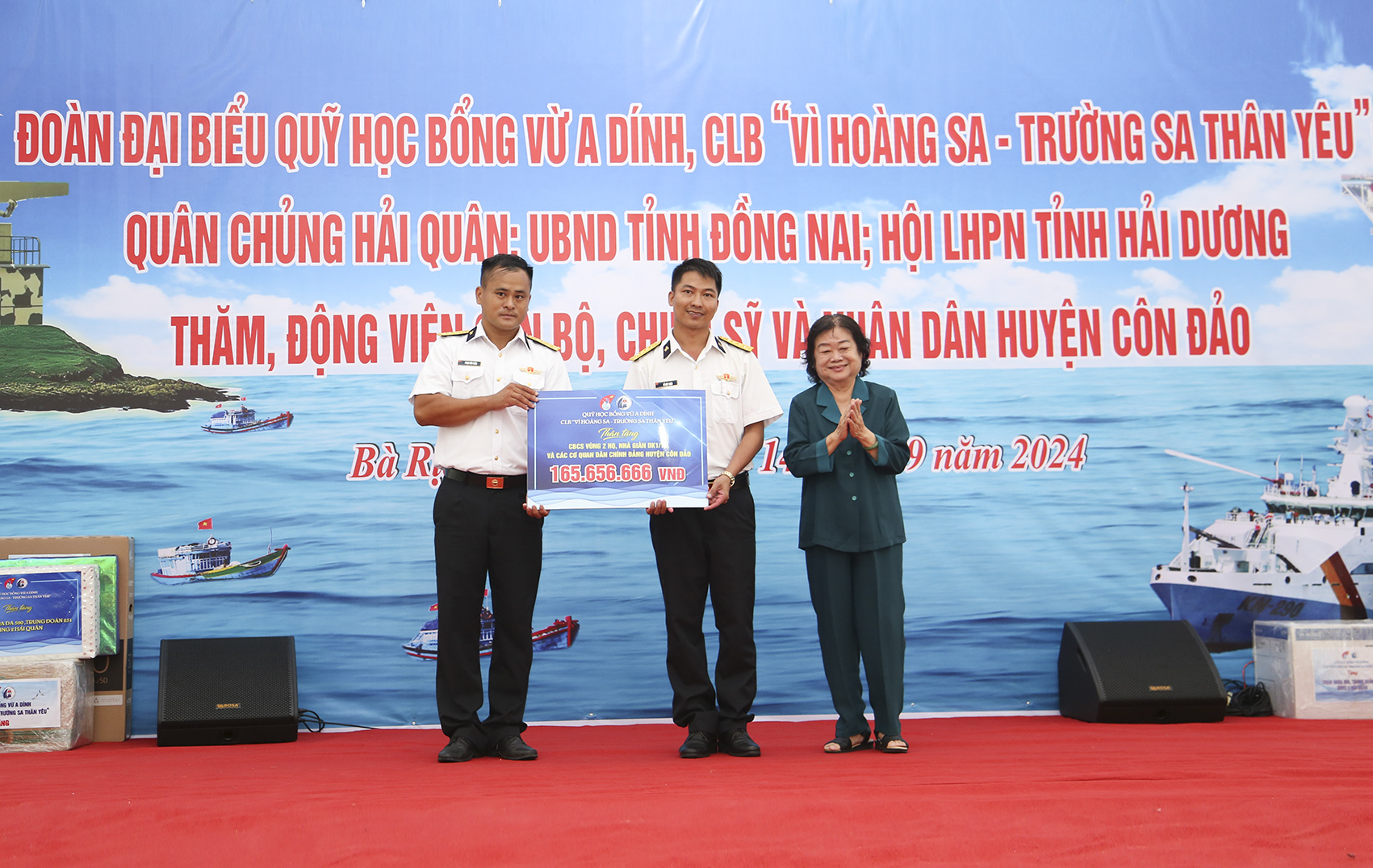Sáng 14/9, trong chuyến hành trình đi thăm các đảo thuộc vùng biển Tây Nam và Nhà giàn DK1 trên thềm lục địa phía Nam của Tổ quốc, đoàn đại biểu Quỹ học bổng Vừ A Dính, Câu lạc bộ “Vì Hoàng Sa - Trường Sa thân yêu”, UBND tỉnh Đồng Nai, Hội Liên hiệp phụ nữ tỉnh Hải Dương và Quân chủng Hải quân đã đến thăm, động viên cán bộ, chiến sĩ và nhân dân huyện Côn Đảo, tỉnh Bà Rịa – Vũng Tàu.