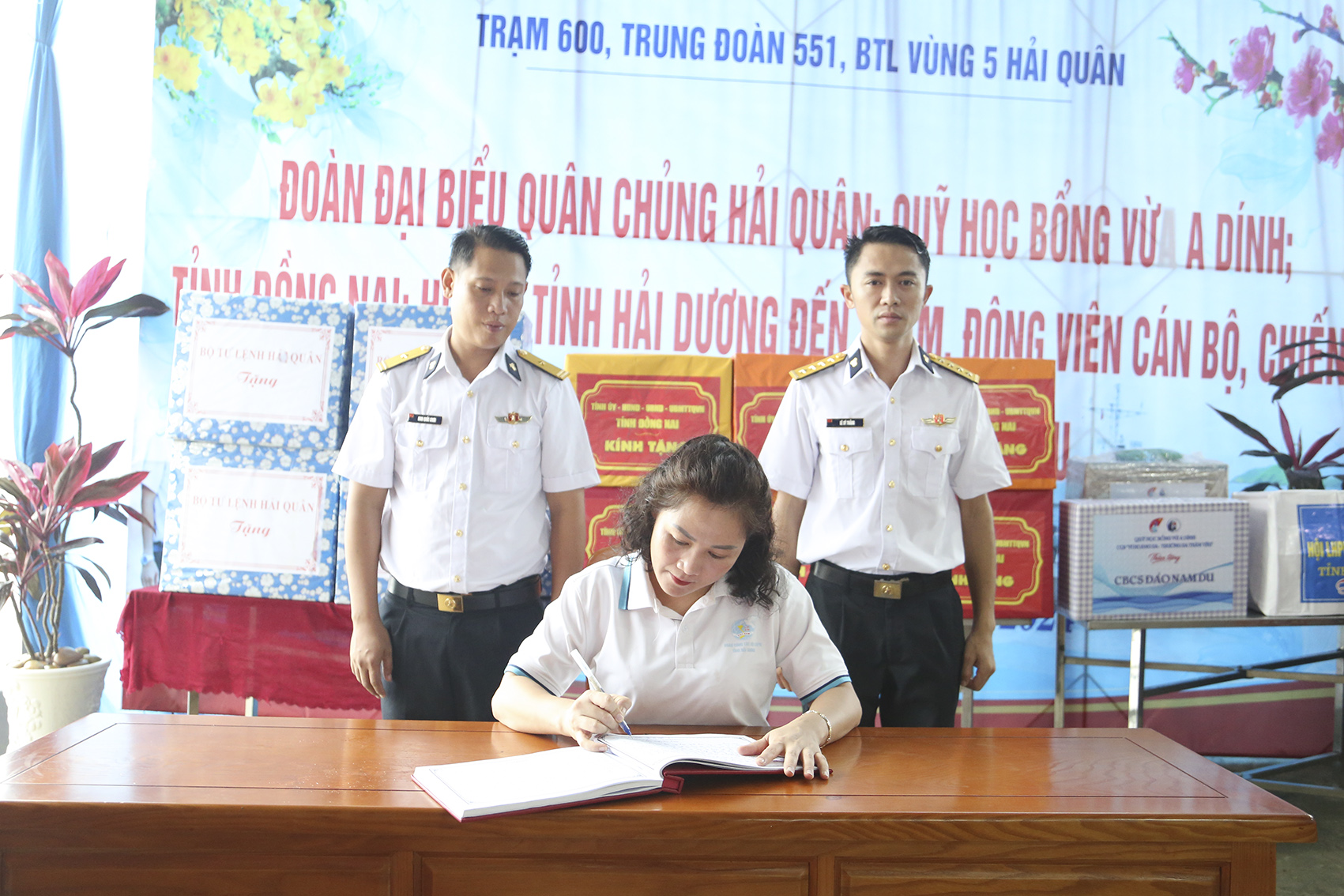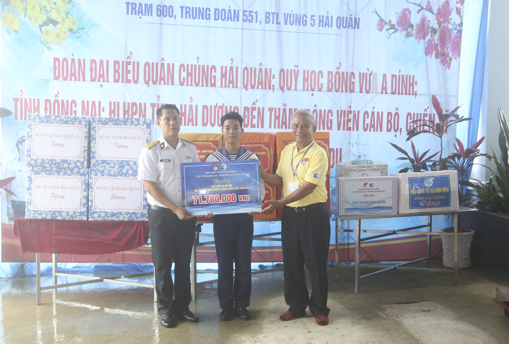 Tại Trạm ra đa 600 thuộc Trung đoàn 551 (Vùng 5 Hải quân), đoàn công tác đã tới thăm, động viên, tặng quà cán bộ, chiến sĩ và các lực lượng đang thực hiện nhiệm vụ trên đảo Nam Du. Trước đó, đoàn tới dâng hương tưởng niệm tại Bia tưởng niệm những người tử nạn vì cơn bão số 5 (2 - 3/11/1997).