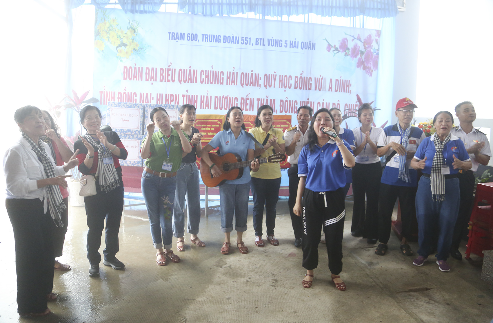 Các đại biểu giao lưu văn nghệ tại Trạm ra đa 600