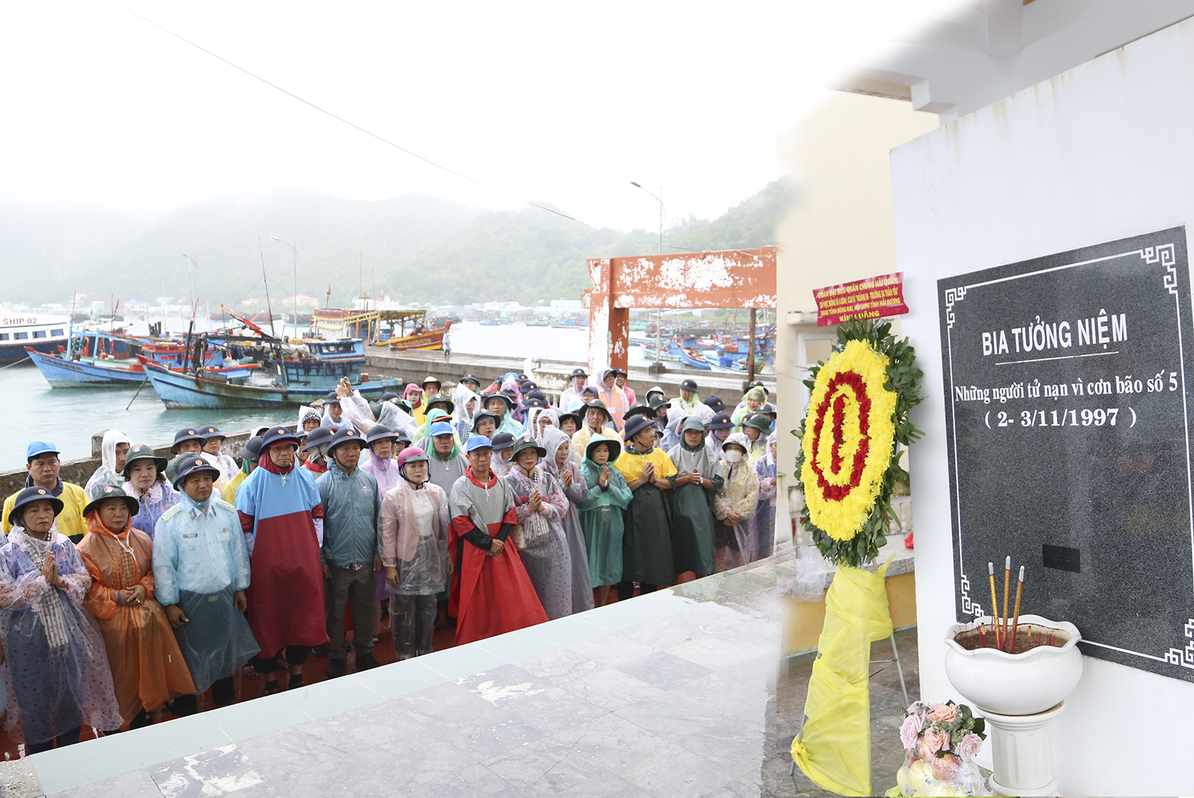 Các đại biểu dâng hương tại Bia tưởng niệm những người tử nạn vì cơn bão số 5 (1997)
