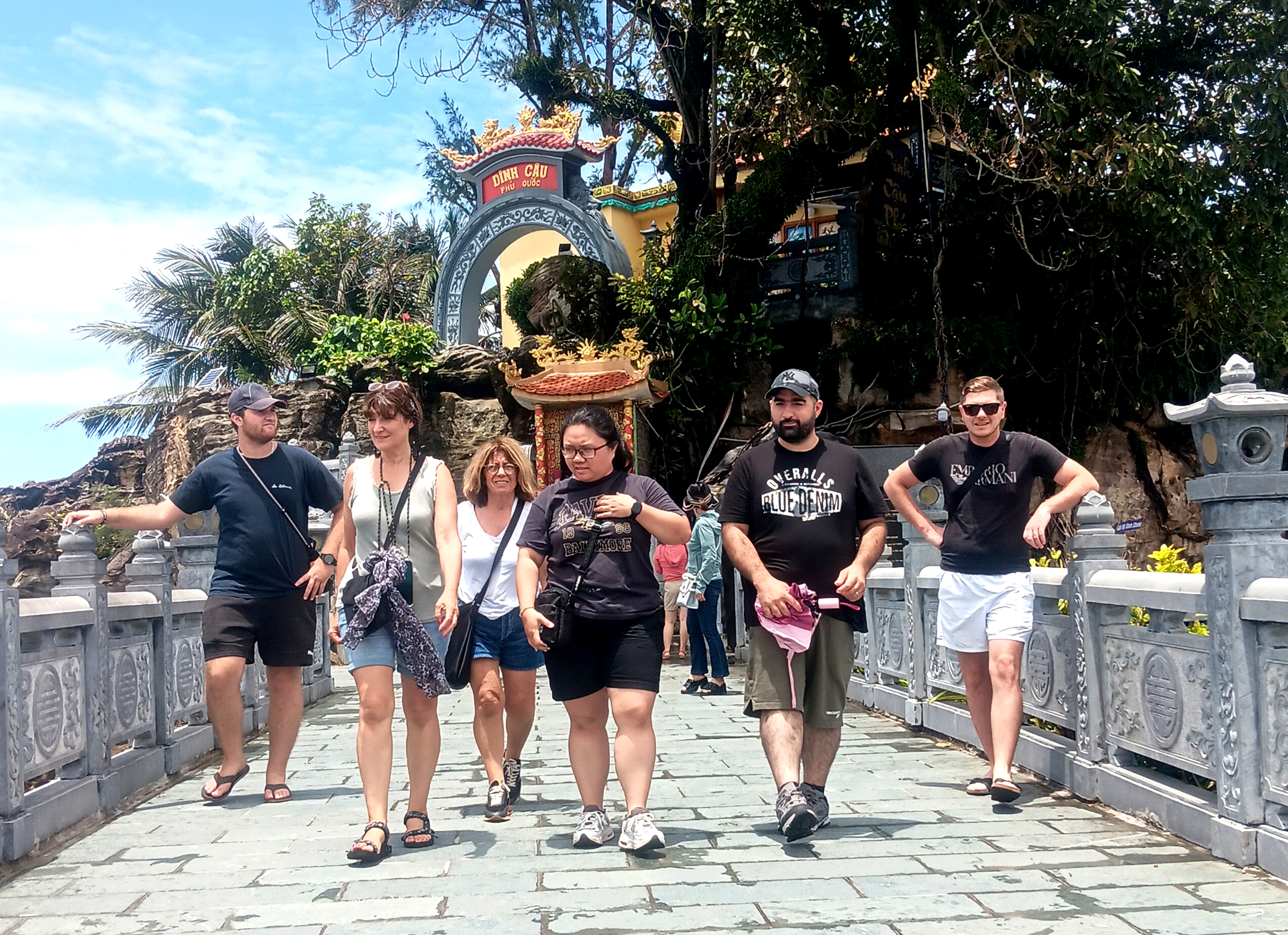 Du khách nước ngoài tham quan di tích Dinh Cậu