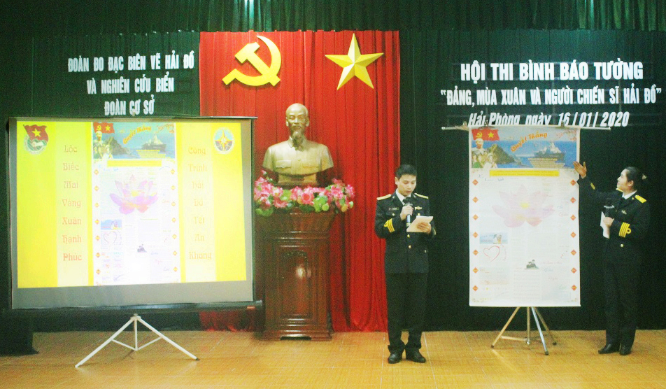Tối 16-1, tại Hải Phòng, Đoàn cơ sở Đoàn đo đạc biên vẽ hải đồ và nghiên cứu biển, Bộ Tham mưu Hải quân tổ chức Hội thi bình báo tường với chủ đề: “Đảng, mùa Xuân và người chiến sĩ hải đồ”. Tham gia thi có 15 chi đoàn, liên chi đoàn trong toàn Đoàn cơ sở.