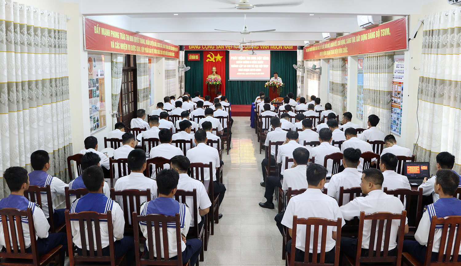 Sáng 23/4, tại TP. Cam Ranh, tỉnh Khánh Hòa, Lữ đoàn 955, Vùng 4 Hải quân tổ chức phát động thi đua đột kích với chủ đề “Phát huy truyền thống, đoàn kết, sáng tạo, kỷ cương, quyết thắng”. Thượng tá Đỗ Văn Sơn, Chính uỷ, Chủ tịch Hội đồng thi đua khen thưởng Lữ đoàn chủ trì.