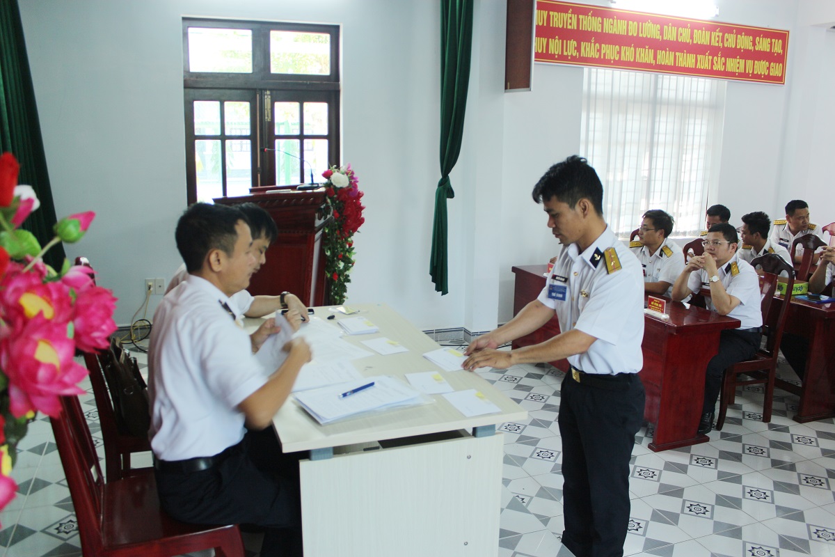 Tham gia thi nâng bậc thợ có 18 đồng chí là nhân viên kỹ thuật đang thực hiện nhiệm vụ trong ngành Tiêu chuẩn-Đo lường-Chất lượng tại các đơn vị trong Quân chủng Hải quân. Các thí sinh thực hiện 2 phần thi, gồm lý thuyết và thực hành trên các phương tiện liên quan đến chuyên môn của mình. Riêng thợ bậc cao, phần thực hành được giao sản phẩm để sửa chữa, khôi phục phương tiện đo phù hợp với chuyên ngành.
