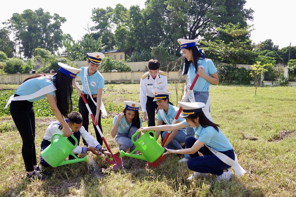 Các thí sinh Hoa hậu biển đảo Việt Nam năm 2022 cùng cán bộ, chiến sĩ Lữ đoàn 147 trồng cây xanh bảo vệ môi trường