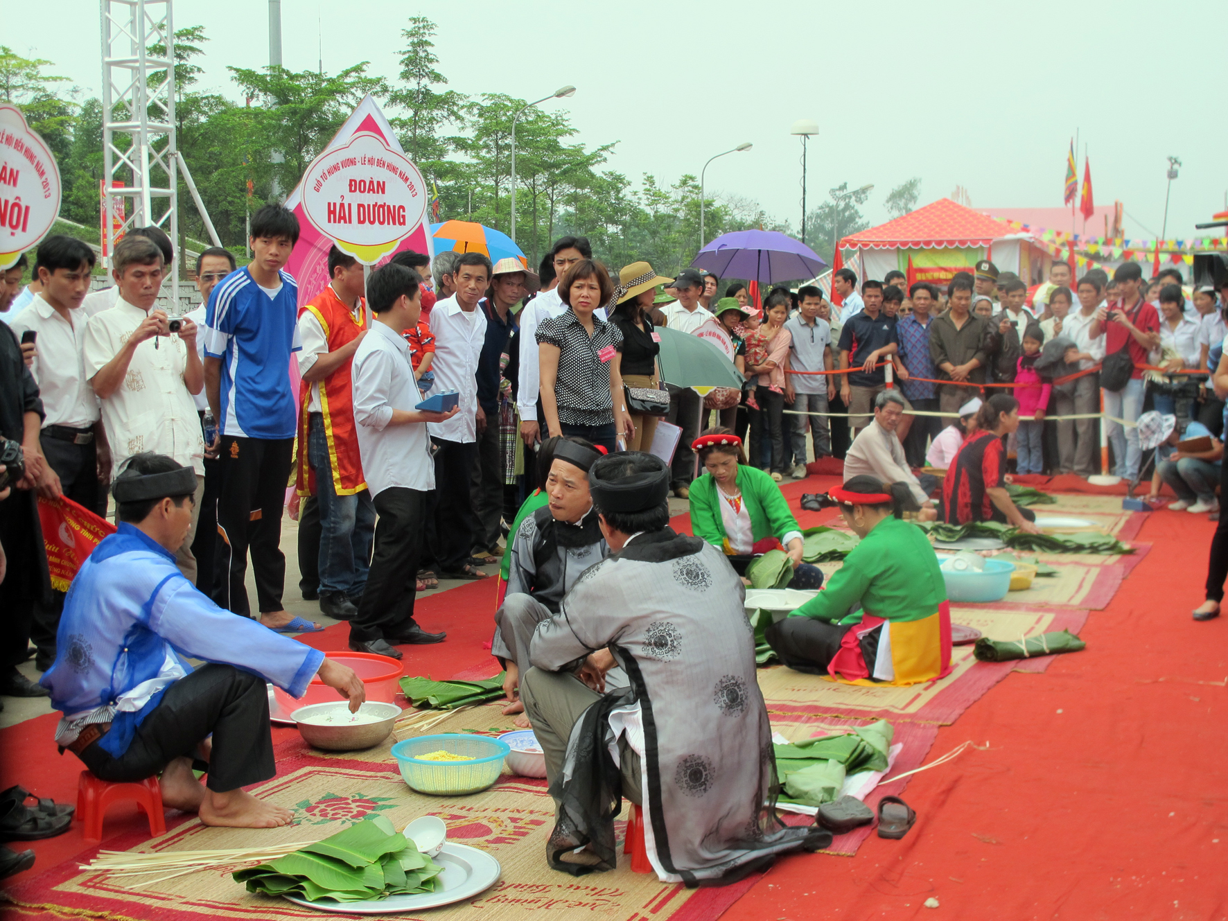 Lễ hội gói bánh chưng, giã bánh giầy được tổ chức tại Giỗ Tổ Hùng Vương, Lễ hội Đền Hùng hằng năm