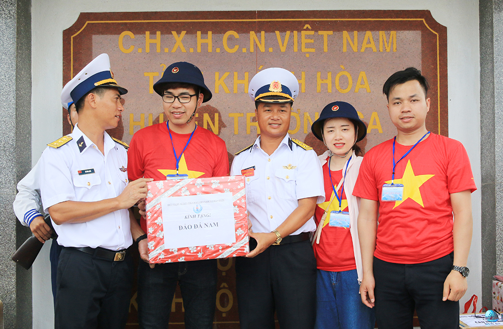 Các thành viên Quỹ "Vì chủ quyền biển, đảo Việt Nam tại Hàn Quốc" tặng quà bộ đội đảo Đá Đông B
