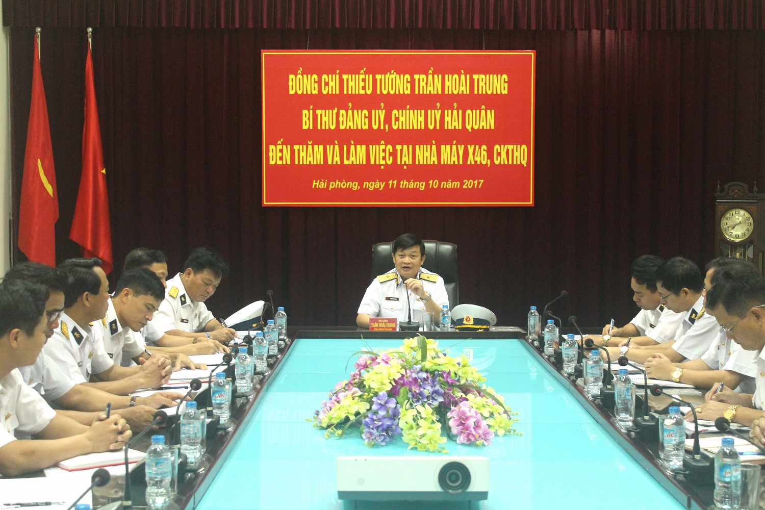 Sáng 11-10, tại Hải Phòng, Thiếu tướng Trần Hoài Trung, Bí thư Đảng ủy, Chính ủy Hải quân đã đến thăm và kiểm tra Nhà máy X46 và Kho 703, Cục Kỹ thuật Hải quân.