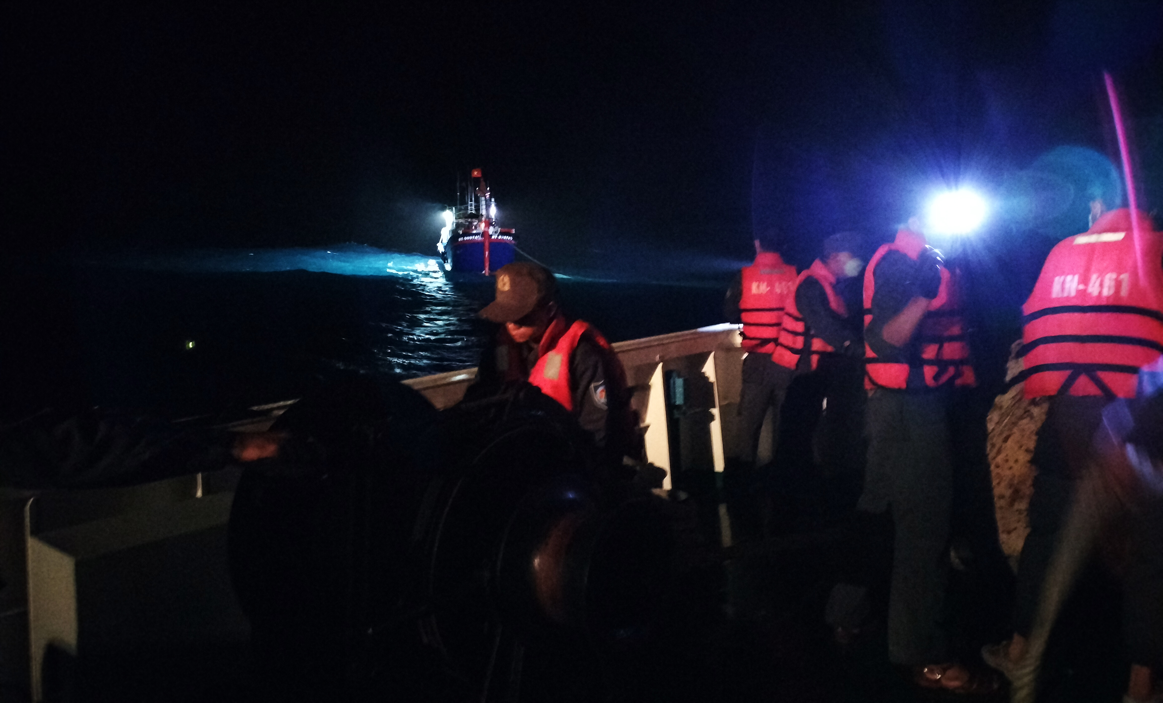 Tàu KN 461 đã triển khai làm dây, lai kéo tàu cá NT 90974 TS an toàn đồng thời thực hiện tốt các biện pháp phòng, chống dịch Covid-19.