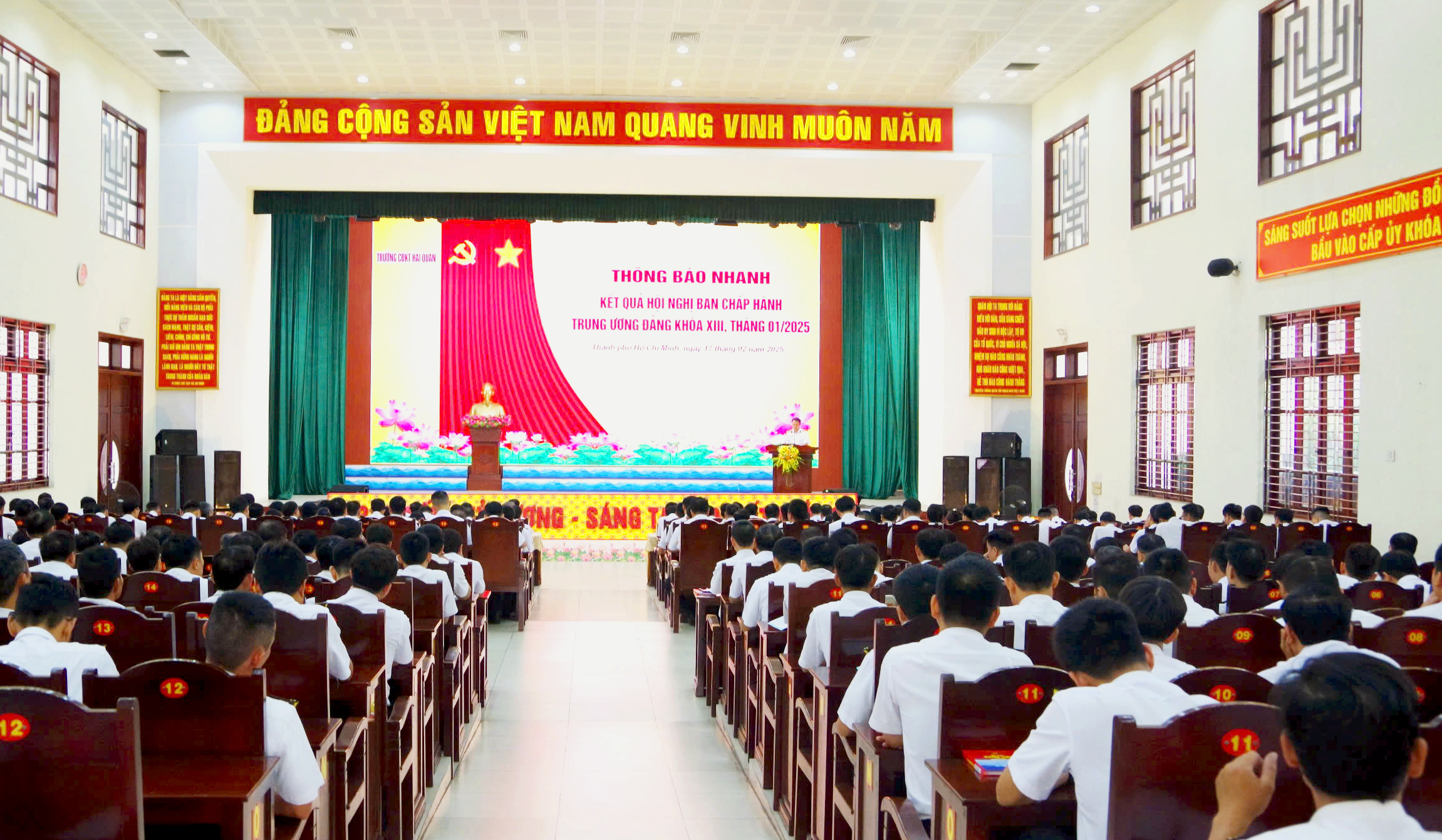 *Chiều cùng ngày, tại TP. Hồ Chí Minh, Đảng ủy Trường Cao đẳng Kỹ thuật Hải quân tổ chức Hội nghị thông báo nhanh kết quả Hội nghị Ban Chấp hành Trung ương khóa XIII, tháng 1/2025. Đại tá Lương Đức Khanh, Bí thư Đảng ủy, Chính ủy nhà trường chủ trì hội nghị.