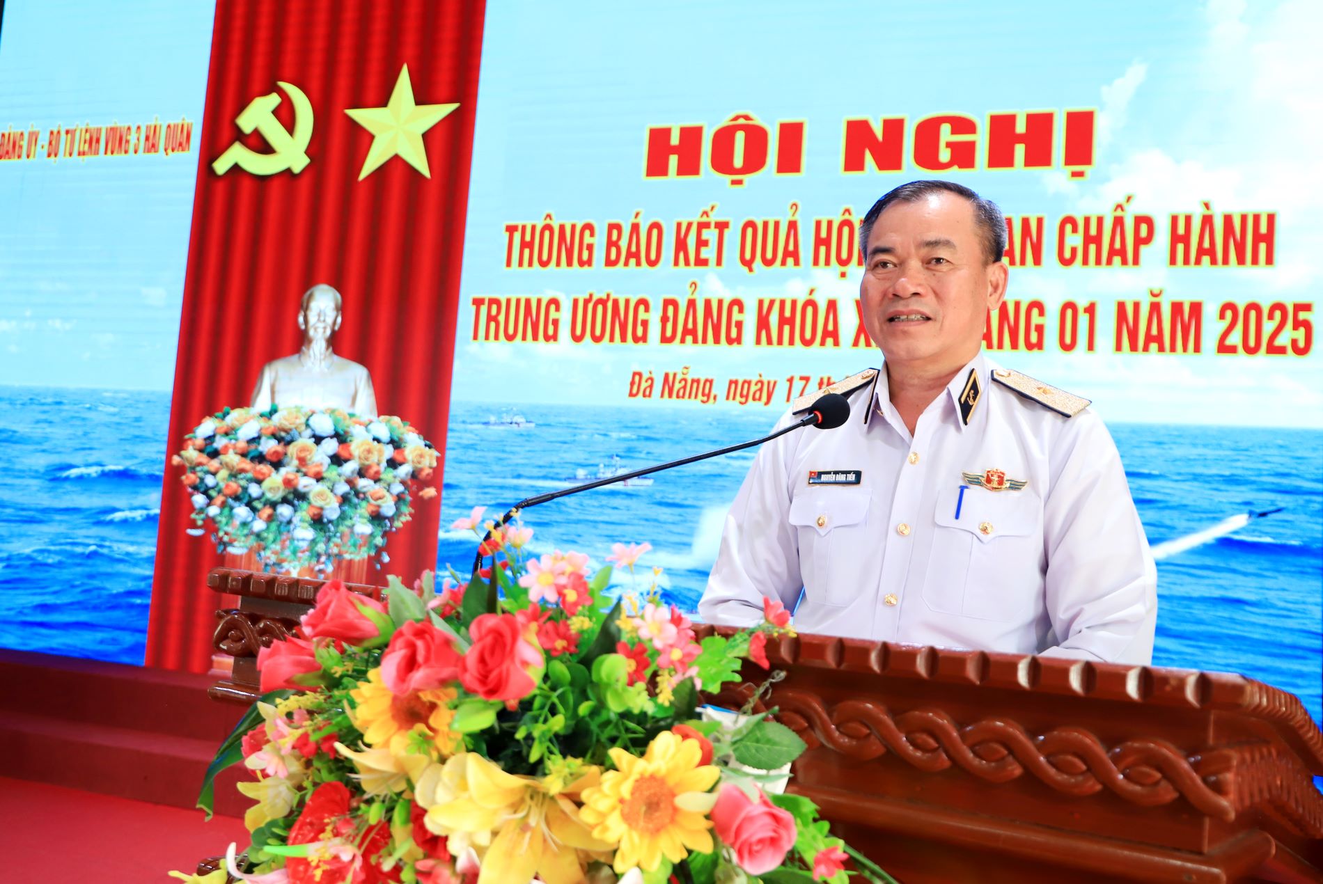 Sáng 17/2, tại Đà Nẵng, Đảng uỷ, Bộ Tư lệnh Vùng 3 Hải quân tổ chức thông báo kết quả Hội nghị Ban Chấp hành Trung ương Đảng khóa XIII, tháng 1 năm 2025. Chuẩn Đô đốc Nguyễn Đăng Tiến, Bí thư Đảng uỷ, Chính uỷ Vùng chủ trì.