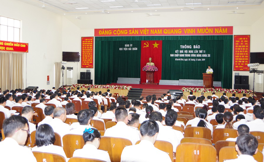Chiều 5-11, tại TP. Nha Trang, tỉnh Khánh Hòa, Đảng uỷ Học viện Hải quân tổ chức Hội nghị thông báo kết quả Hội nghị lần thứ 11, Ban Chấp hành Trung ương Đảng, Khóa XII cho hơn 500 cán bộ, đảng viên Học viện.