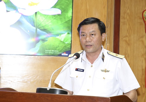 Chuẩn Đô đốc Phạm Văn Vững, Bí thư Đảng ủy, Chính ủy Hải quân thông báo tại hội nghị