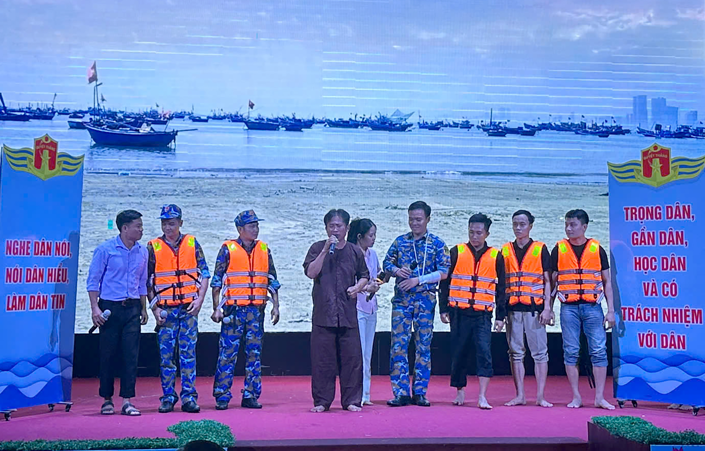 Đội thi báo cáo nội dung luyện tập gồm: phần thi chào hỏi, giới thiệu về Quân chủng Hải quân; giới thiệu mô hình tiêu biểu về công tác dân vận của Hải quân với vở kịch "Điểm tựa giữa trùng khơi"; phần thi xử trí tình huống công tác dân vận bằng hình thức sân khấu hóa.