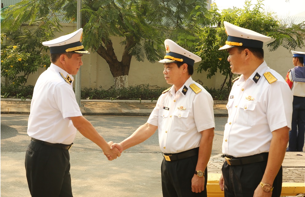 Chỉ huy Lữ đoàn 83 đón Chuẩn Đô đốc Nguyễn Đình Hùng
