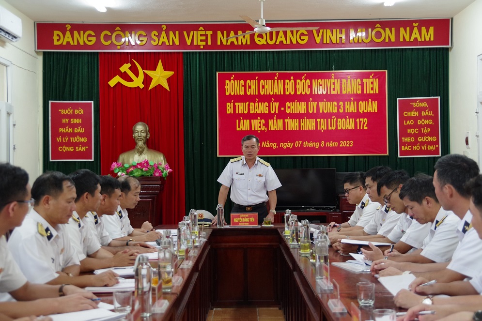 Chiều 7/8, tại Đà Nẵng, đoàn công tác của Bộ Tư lệnh Vùng 3 Hải quân do Chuẩn Đô đốc Nguyễn Đăng Tiến, Bí thư Đảng ủy, Chính ủy Vùng làm trưởng đoàn đã đến kiểm tra, nắm tình hình tại Lữ đoàn 172.
