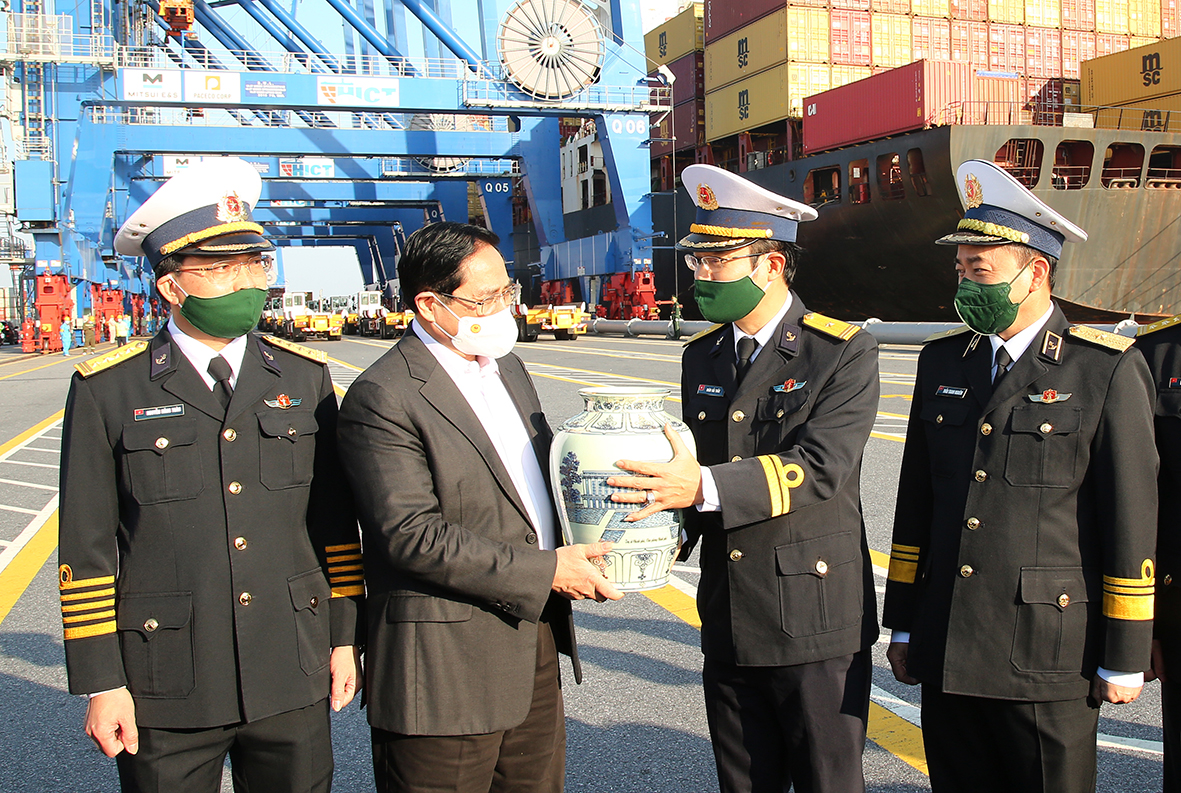 Sáng 19/12, tại TP. Hải Phòng, đồng chí Phạm Minh Chính, Ủy viên Bộ Chính trị, Thủ tướng Chính phủ cùng đoàn công tác của Chính phủ đến thăm và khảo sát tình hình hoạt động tại Cảng Container Quốc tế Tân cảng Hải Phòng (TC-HICT) thuộc Tổng công ty Tân cảng Sài Gòn, Quân chủng Hải quân.