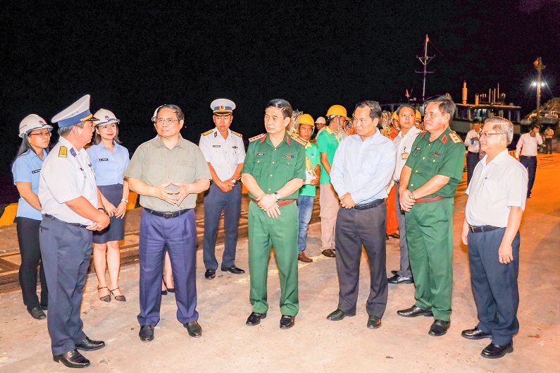 Thủ tướng nhấn mạnh: Để phát triển kinh tế tại khu vực, trong đó vận tải biển và đường sông hoạt động hiệu quả, yêu cầu địa phương phối hợp với Bộ Giao thông vận tại sớm có kế hoạch nạo vét luồng Quan Chánh Bố và luồng Định An...