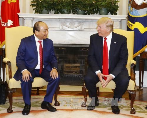 Tổng thống Donald Trump đã hoan nghênh Thủ tướng Chính phủ Nguyễn Xuân Phúc và Đoàn đại biểu cấp cao của Việt Nam tới thăm chính thức Hoa Kỳ; khẳng định coi trọng quan hệ Việt Nam - Hoa Kỳ và vai trò của Việt Nam và vai trò của ASEAN tại khu vực; mong muốn quan hệ hai nước thời gian tới tiếp tục phát triển mạnh mẽ. Thủ tướng Nguyễn Xuân Phúc cảm ơn Tổng thống Donald Trump và Chính quyền Hoa Kỳ đã đón Đoàn nồng ấm và trọng thị; khẳng định Việt Nam coi trọng phát triển quan hệ Đối tác Toàn diện với Hoa Kỳ; đánh giá cao các bước triển khai chính sách của Chính quyền Tổng thống Trump đối với khu vực châu Á - Thái Bình Dương thời gian qua.