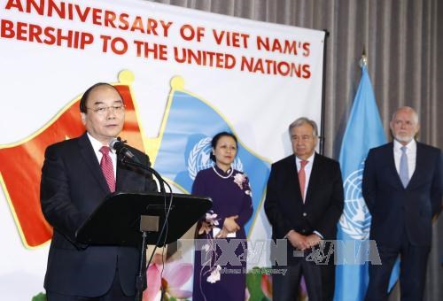 Phát biểu tại Lễ kỷ niệm, Thủ tướng Nguyễn Xuân Phúc nhắc lại thời khắc thiêng liêng khi quốc kỳ Việt Nam lần lần đầu tiên được kéo lên tại trụ sở Liên hợp quốc cách đây 40 năm, đánh dấu sự công nhận của cộng đồng quốc tế đối với một nước Việt Nam độc lập, tự do, thống nhất, mở ra thời kỳ Việt Nam bước vào hội nhập quốc tế. Thủ tướng nhấn mạnh, người dân Việt Nam luôn ghi nhớ sự hỗ trợ hết sức quý báu của Liên hợp quốc và cộng đồng quốc tế trong quá trình tái thiết đất nước sau chiến tranh, phát triển và đạt được những thành tựu như ngày hôm nay.
